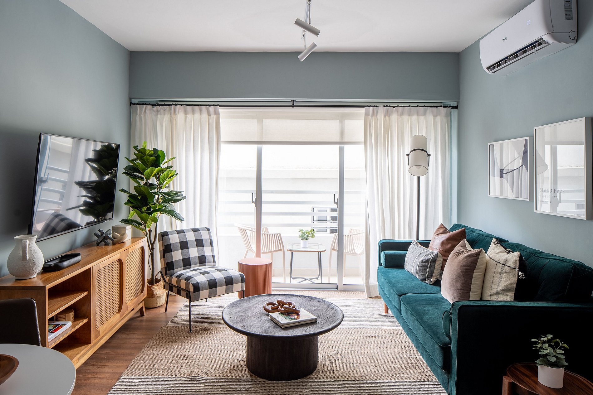 Enjoy the simplicity of this quiet and centrally located accommodation.Kick back and relax in this calm and stylish space. DESIGNED by famed interior designer CARMEN ARIZA of interior designs, enjoy our comfortable sofa with our 55-inch smart TV or cook in our fully equipped kitchen.