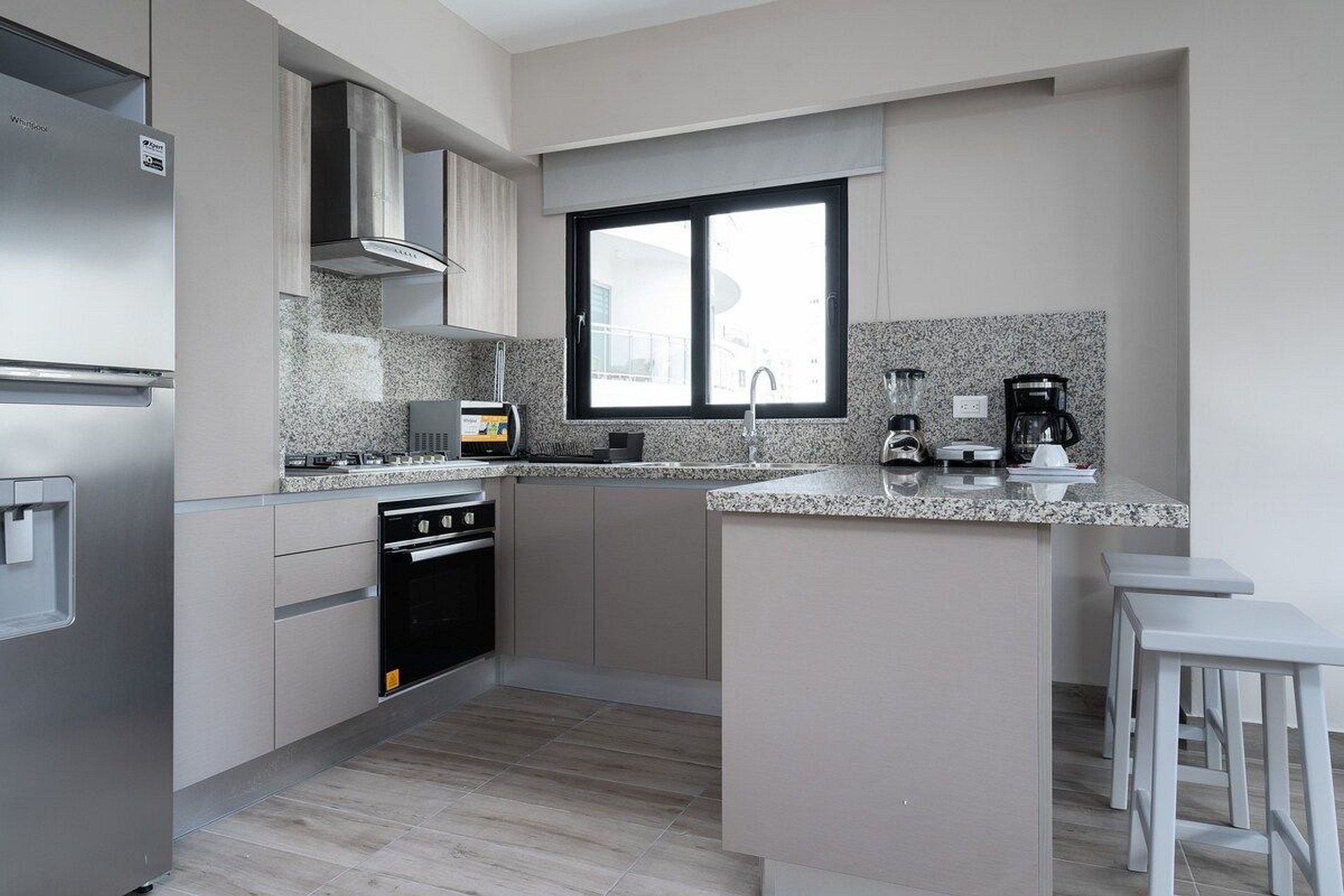 Enjoy the experience of staying in our new comfy and Luxury 2 bedroom Apartment in the exclusive area of Piantini in the Financial area. The rooftop has incredible city views fully furnished with a 55" HD flat smart TV in the living room and a 43" smart tv in the Bedroom with king sized bed, High speed Internet and kitchen amenities, also from here you can walk to some of the best restaurants, spend the afternoon shopping in BLUE MALL or enjoy our pool with city views. No visitors!