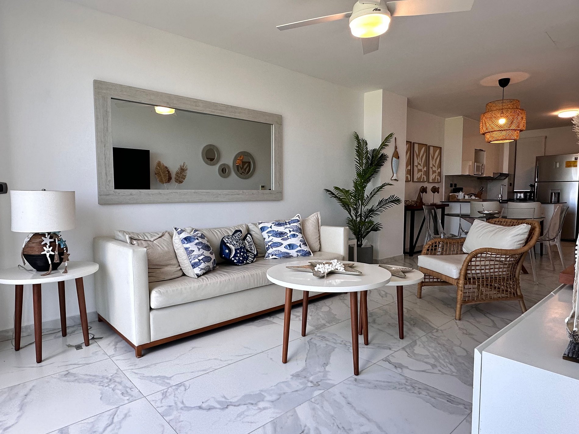 A bright living and dining area, perfect for relaxing after a day at the beach or on the golf course