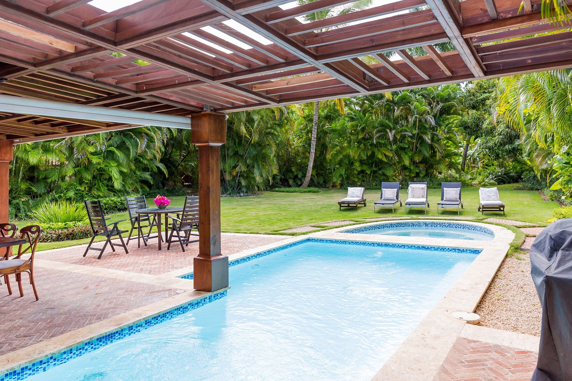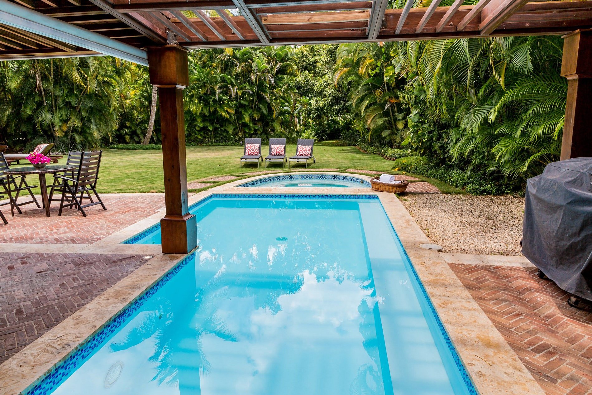 - **Private Pool and Jacuzzi:** Step outside to your own tropical paradise featuring a sparkling pool and a soothing jacuzzi. Whether you're taking a refreshing morning swim or unwinding under the stars, these amenities promise relaxation at its finest.