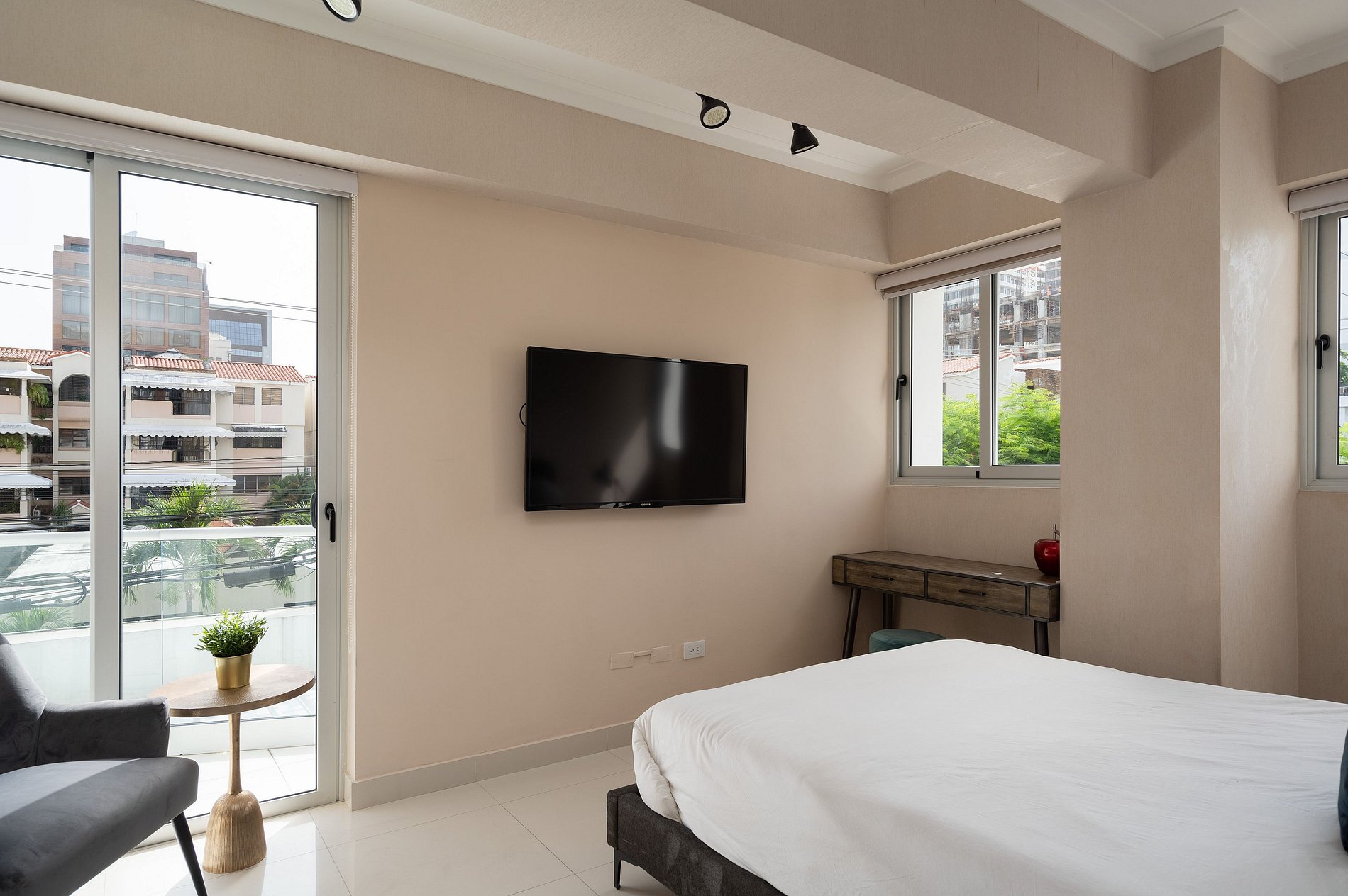 Welcome to your urban retreat in the heart of Santo Domingo's! This chic 1-bedroom apartment on the 11th floor offers a peaceful haven in a secure, contemporary building. Unwind in style as you step onto your small private terrace and take in breathtaking view of the city.