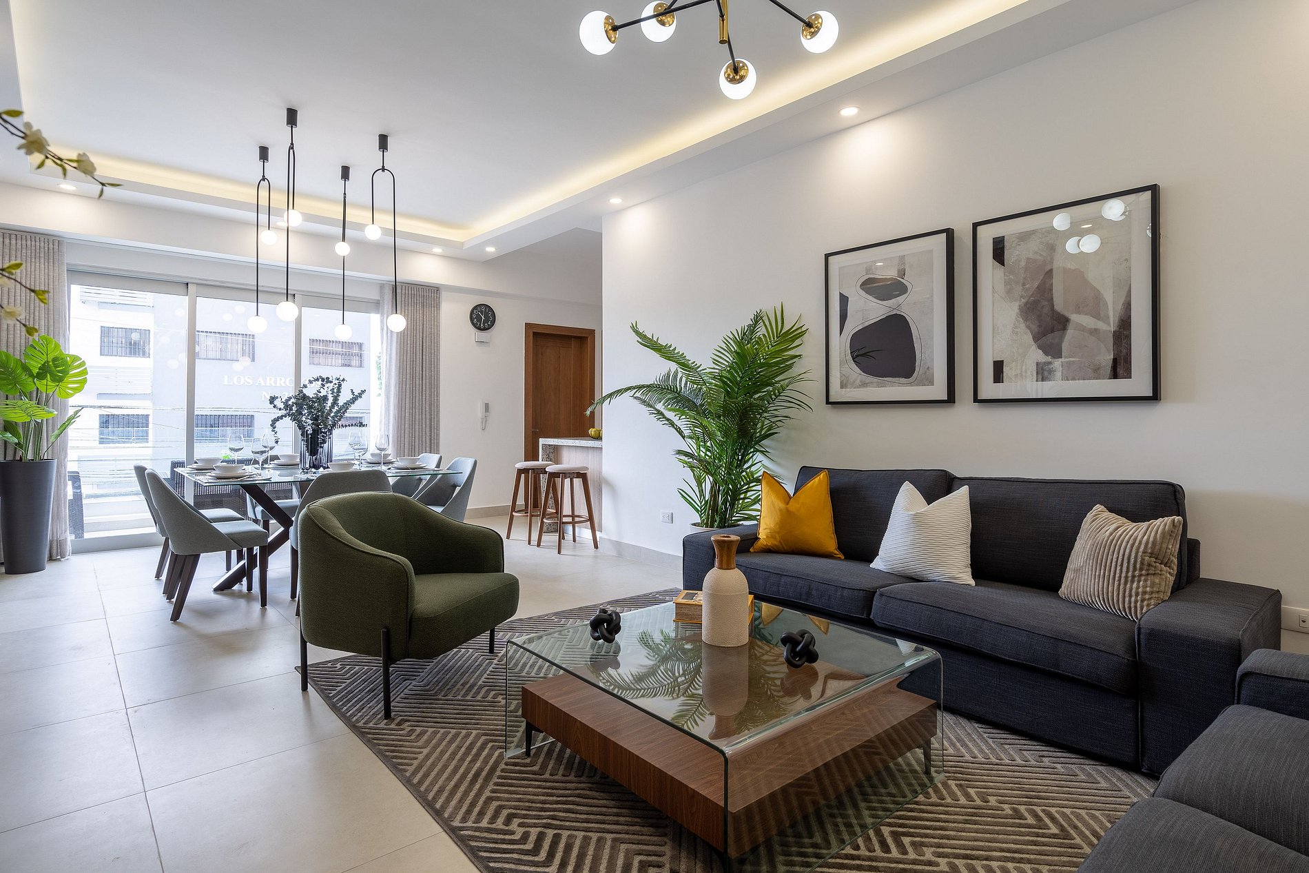 This beautiful three bedrooms apartment, is located in growing area of Evaristo Morales . This is a new apartment tastefully decorated to make you feel at home, The apartment has integrated living room and dining area to enjoy great moments. When you are ready to unwind and relax, the Family room will be waiting for you with a Smart TV to watch your favorite movies. The kitchen comes equipped with all the basic amenities you may need during your stay to prepare your favorite meals. The master bedroom has a King-sized bed, ensuite full bathroom, walk-in closet and a workspace. Second and third bedroom have a Queen-sized bed, private full bathroom, and closet space.