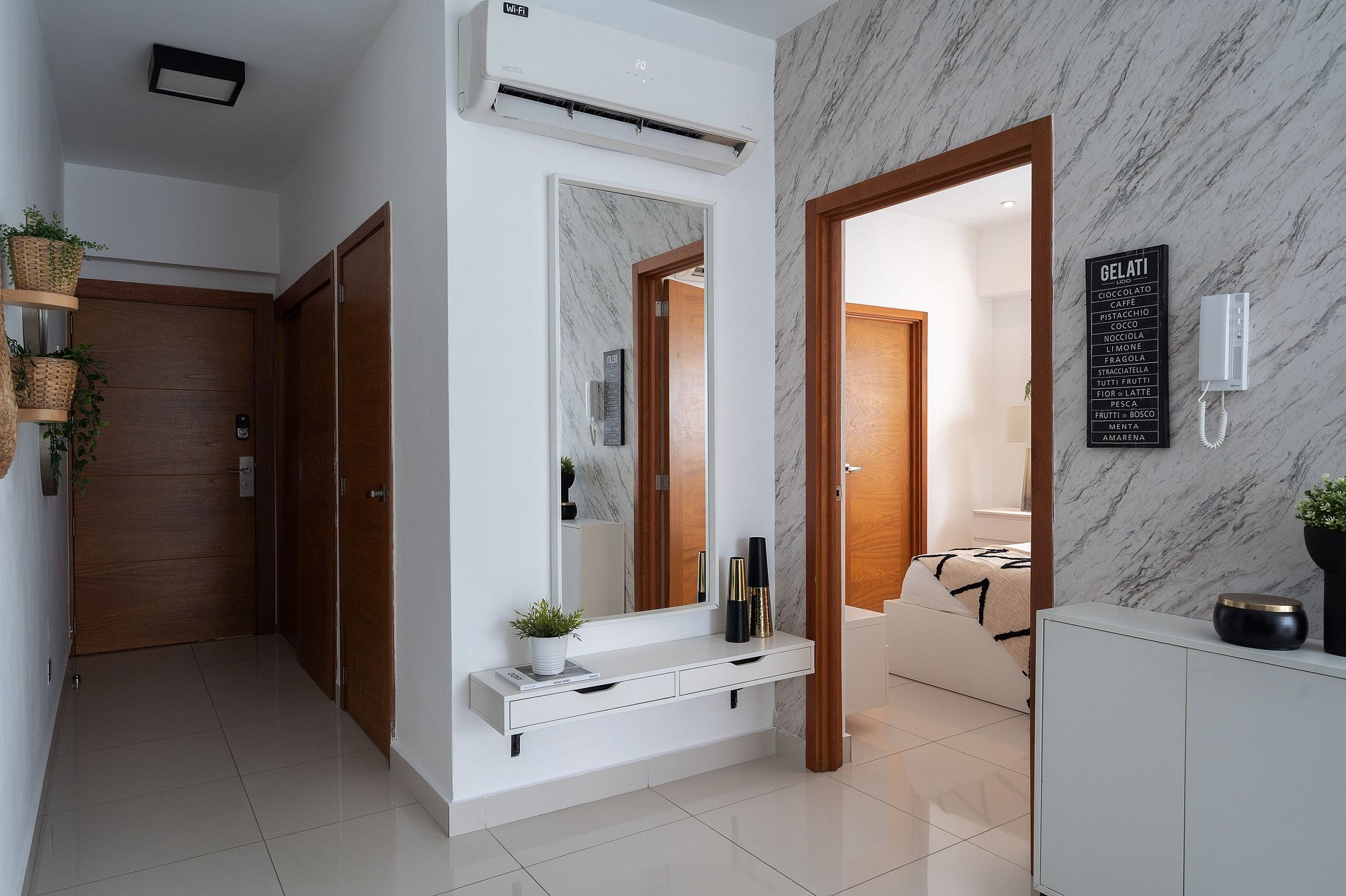 This is an amazing apartment recently decorated to meet your high standards. Every detail has been hand selected to be different, to stand out and to create an amazing place for you to stay. Its on the 9th floor in a 24/7 guarded building that has been recently finished with high quality materials and safety in mind.