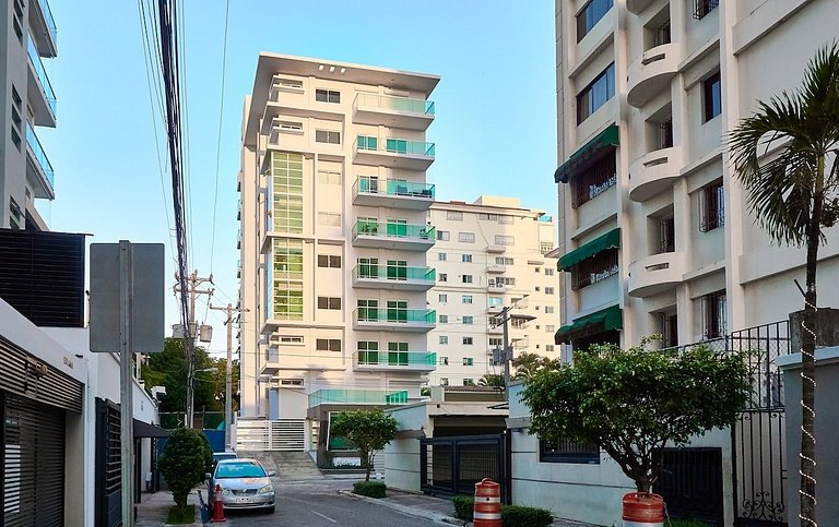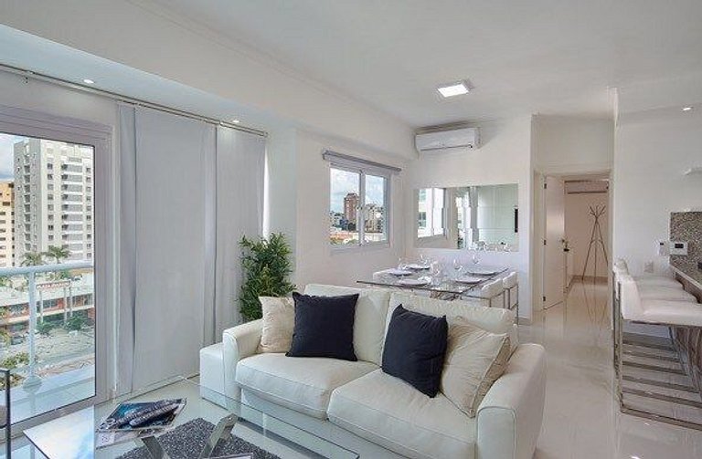 This luxury and comfortable one bedroom apartment is fully equipped with all traveler’s needs. quiet, private, secure and located in a Luxury building, near the best restaurants, supermarkets, pharmacies, shopping malls and hotels in the city center of Santo Domingo The flat is fully furnished and includes amenities such as washer and dryer machines, small balcony, 24/7 security and concierge, 1 free parking spot , rooftop terrace, and gym.