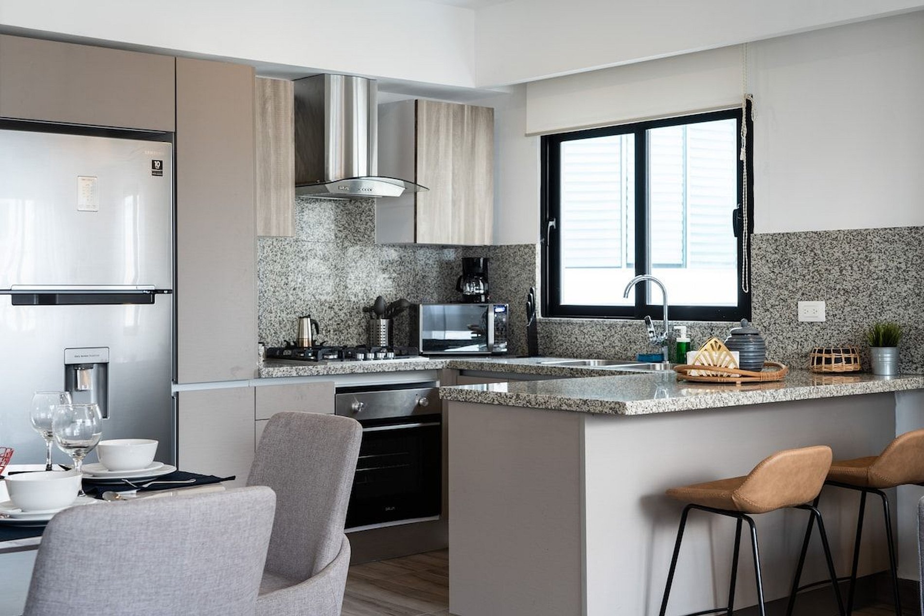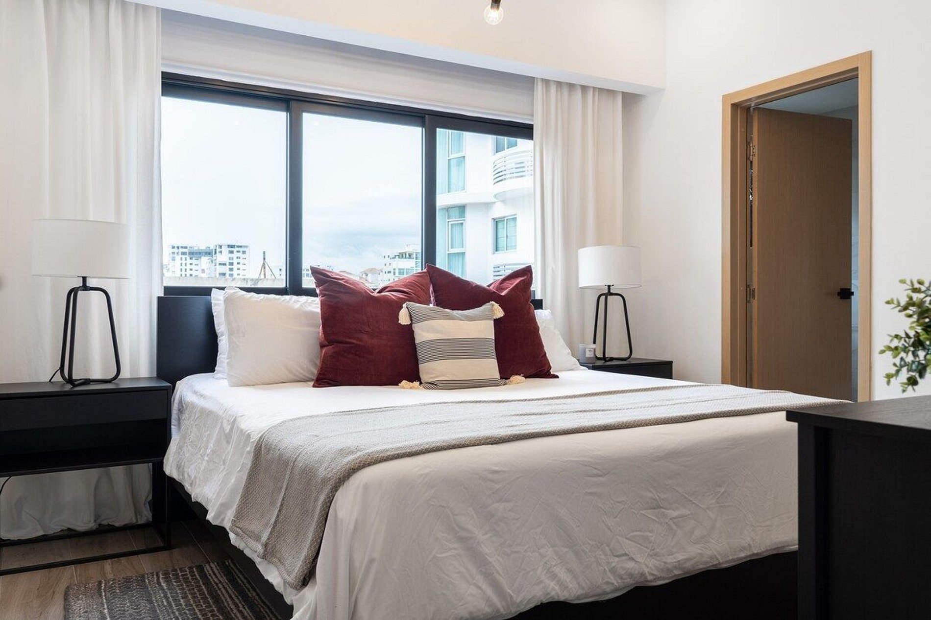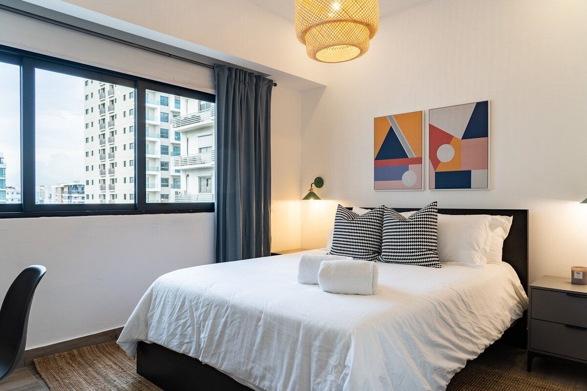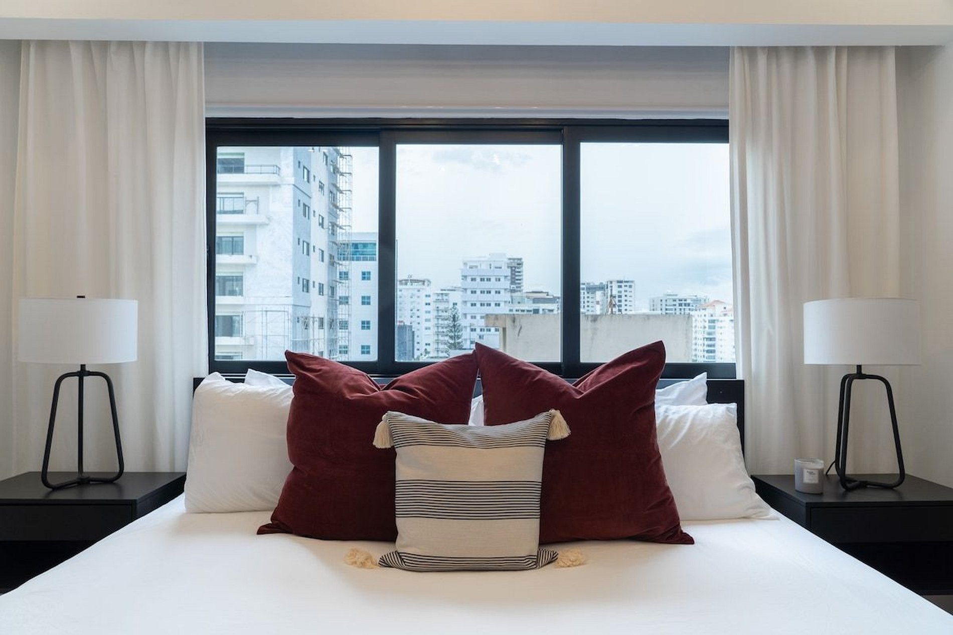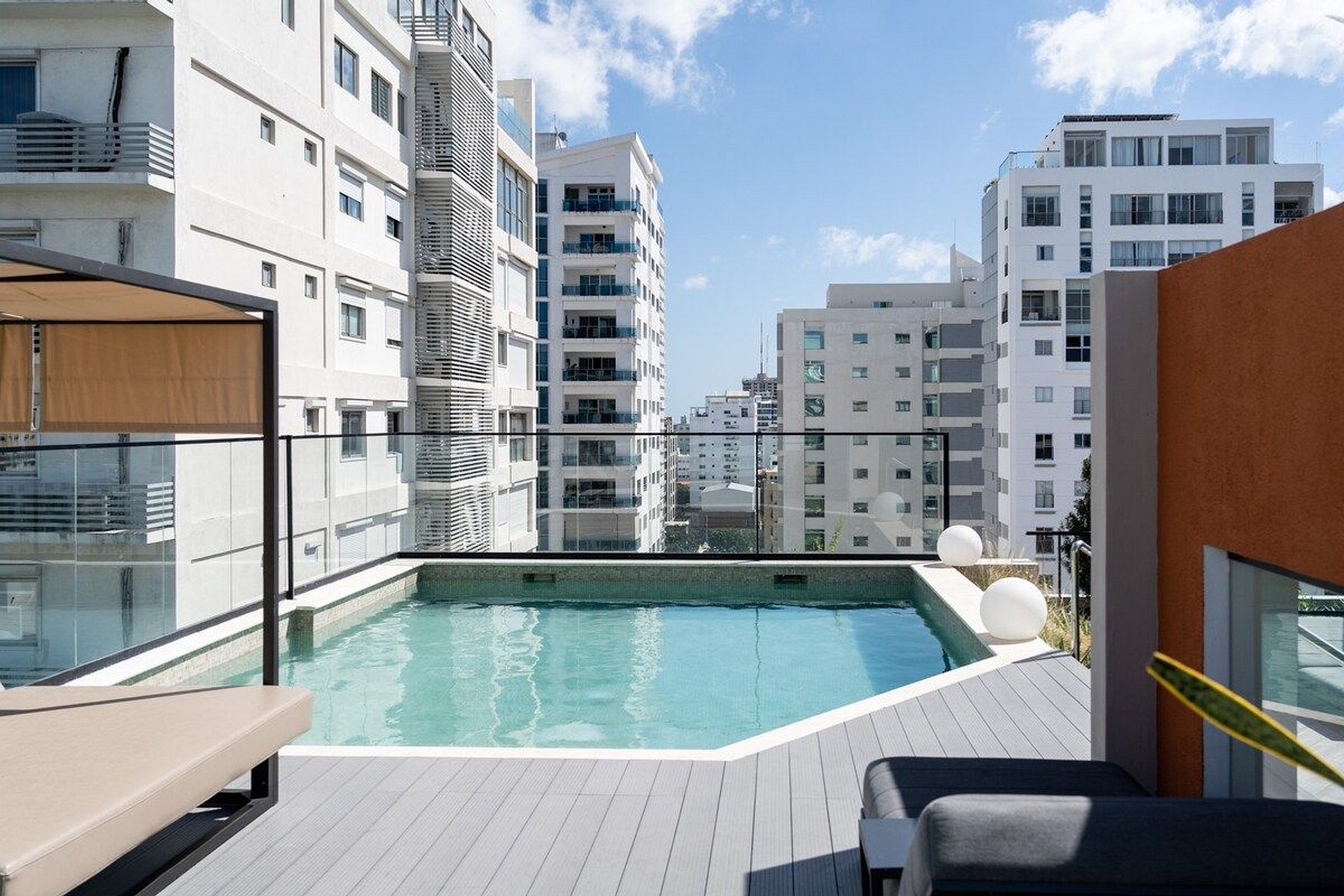 Enjoy the experience of staying in our new comfy and Luxury 2 bedroom Apartment in the exclusive area of Piantini in the Financial area. The rooftop has incredible city views fully furnished with a 55" HD flat smart TV in the living room and a 55" smart tv in the master Bedroom with king sized bed, High speed Internet and kitchen amenities, also from here you can walk to some of the best restaurants, spend the afternoon shopping in BLUE MALL or enjoy our pool with city views. No visitors