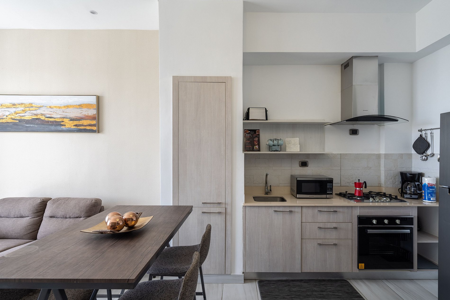 As a guest of this exclusive apartment, you'll have access to a range of premium amenities within the building. Head up to the rooftop to soak up the sunshine and take a dip in the pool while enjoying breathtaking views of the city. Stay active in the state-of-the-art gym, or let the little ones burn off energy in the terrace.