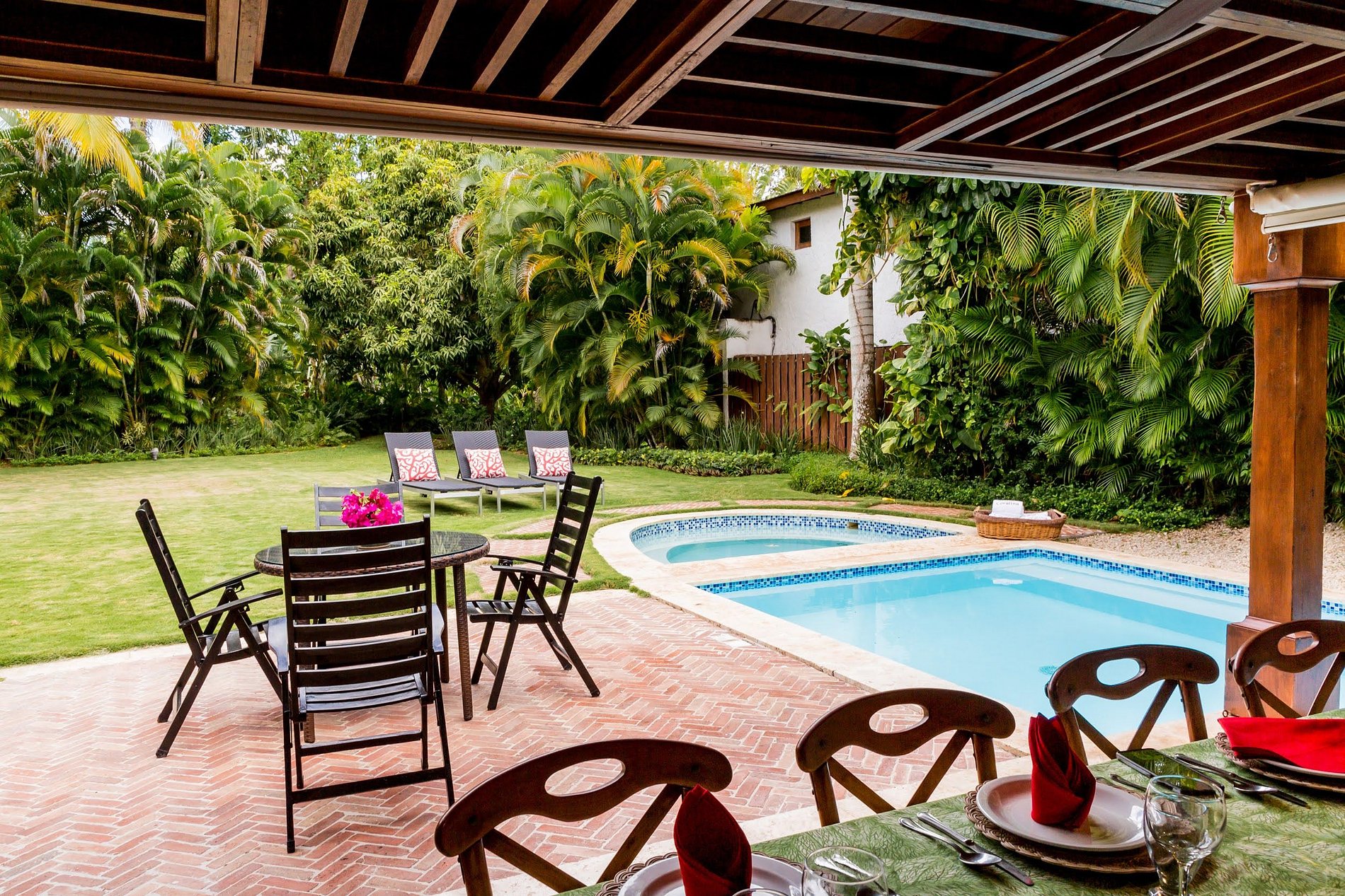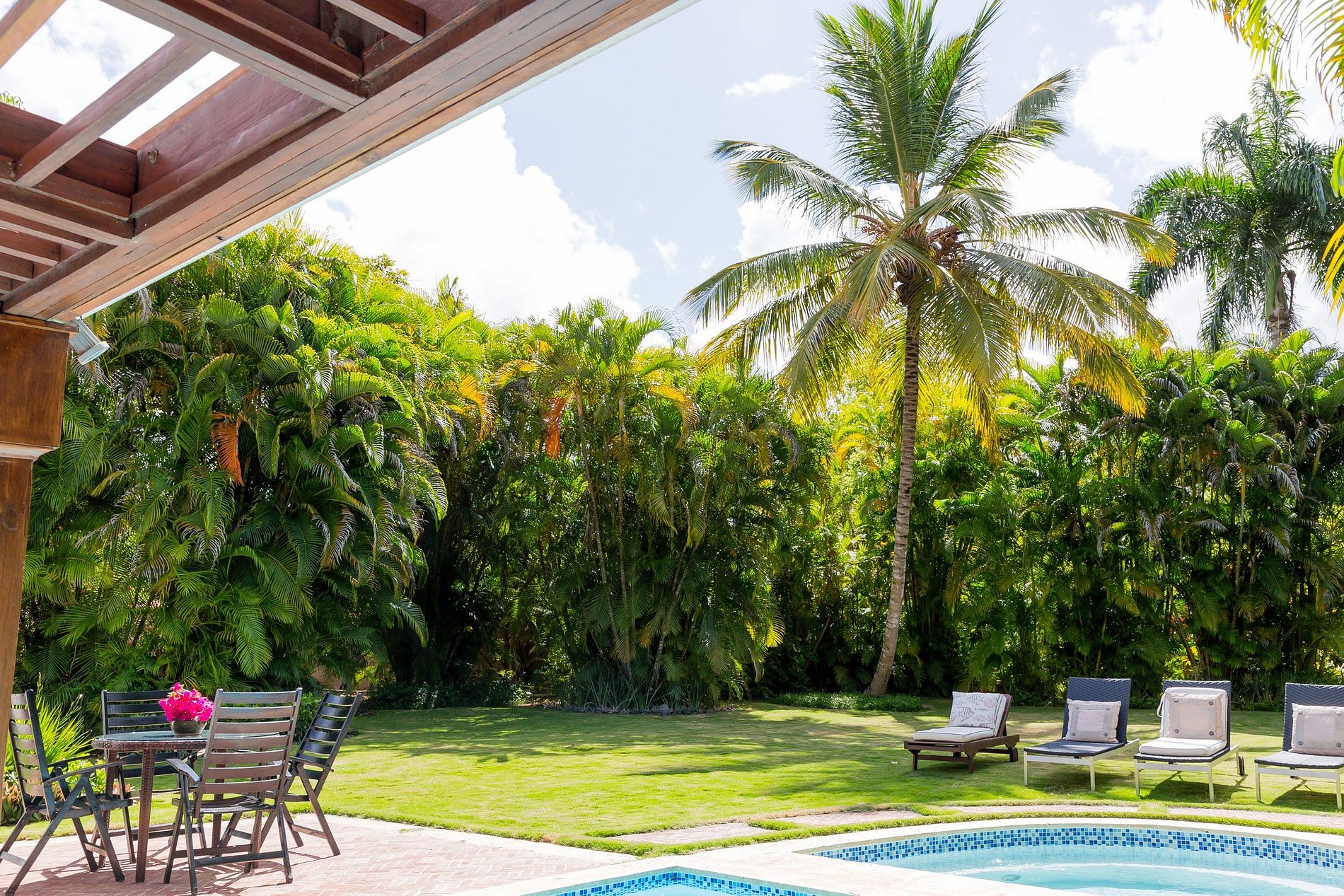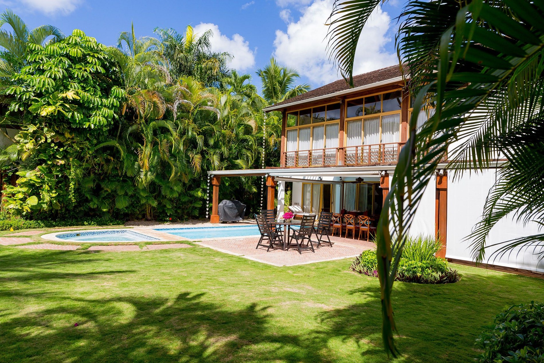 - **Private Pool and Jacuzzi:** Step outside to your own tropical paradise featuring a sparkling pool and a soothing jacuzzi. Whether you're taking a refreshing morning swim or unwinding under the stars, these amenities promise relaxation at its finest.
