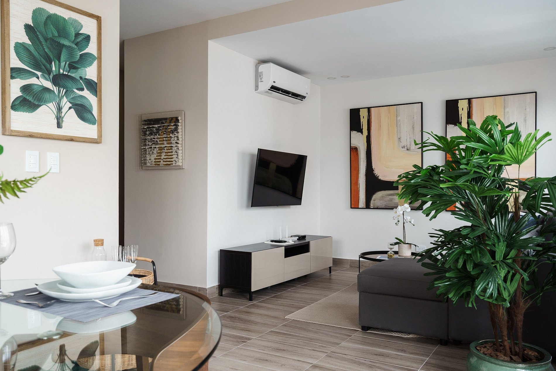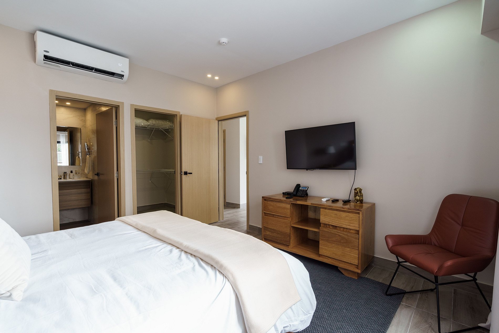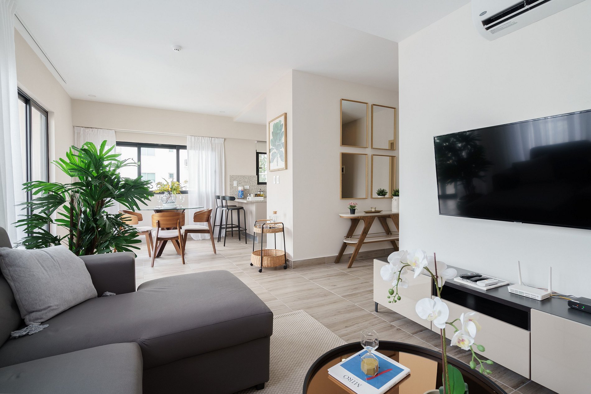 Enjoy the experience of staying in our comfy and Luxury Apartment in the exclusive area of Piantini in the Financial area of Santo Domingo. The rooftop has incredible city views fully furnished with a 55" HD flat smart TV in the living room and a 43" smart tv in the Bedroom with Full sized bed, High speed Internet and kitchen amenities, also from here you can walk to some of the best restaurants, spend the afternoon shopping in the BLUE MALL or enjoy our pool with city views.