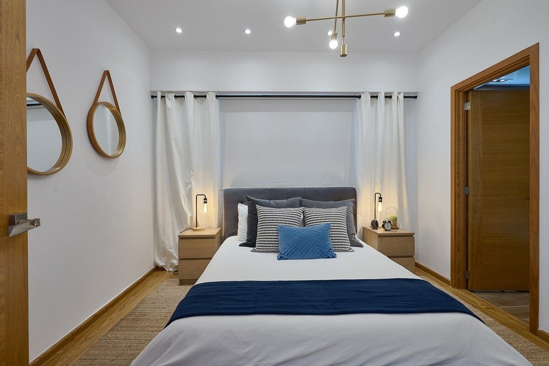 Retreat to the inviting bedroom, where a comfortable king-sized bed awaits, guaranteeing a restful night's sleep. Ample storage space is provided for your belongings, and luxurious linens ensure maximum comfort. The modern bathroom features a walk-in shower, sleek fixtures, and complimentary toiletries for your convenience.