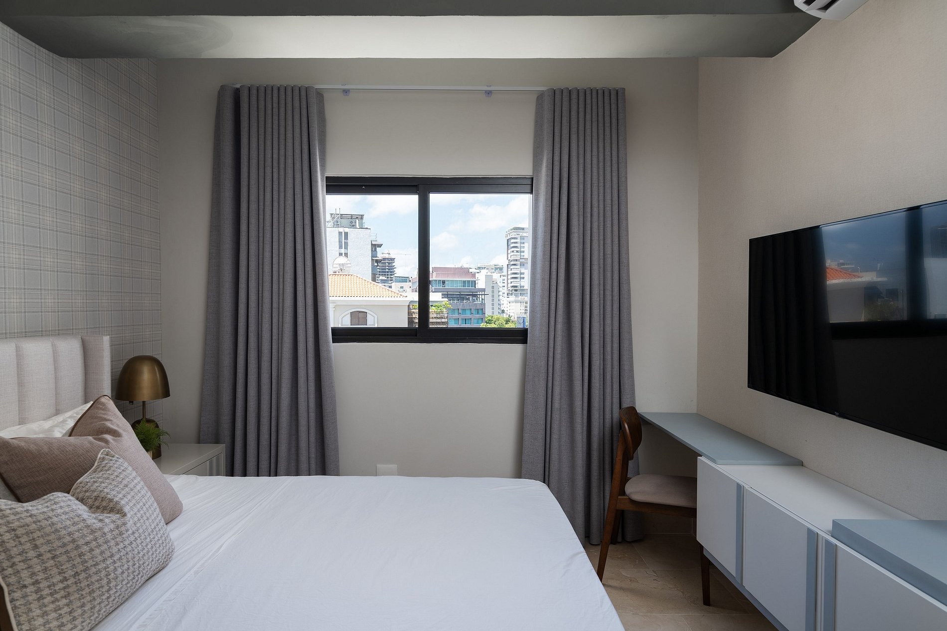 Welcome to your luxurious escape in the heart of Serralles, Santo Domingo! this fully furnished one-bedroom apartment offers the perfect blend of elegance and comfort.