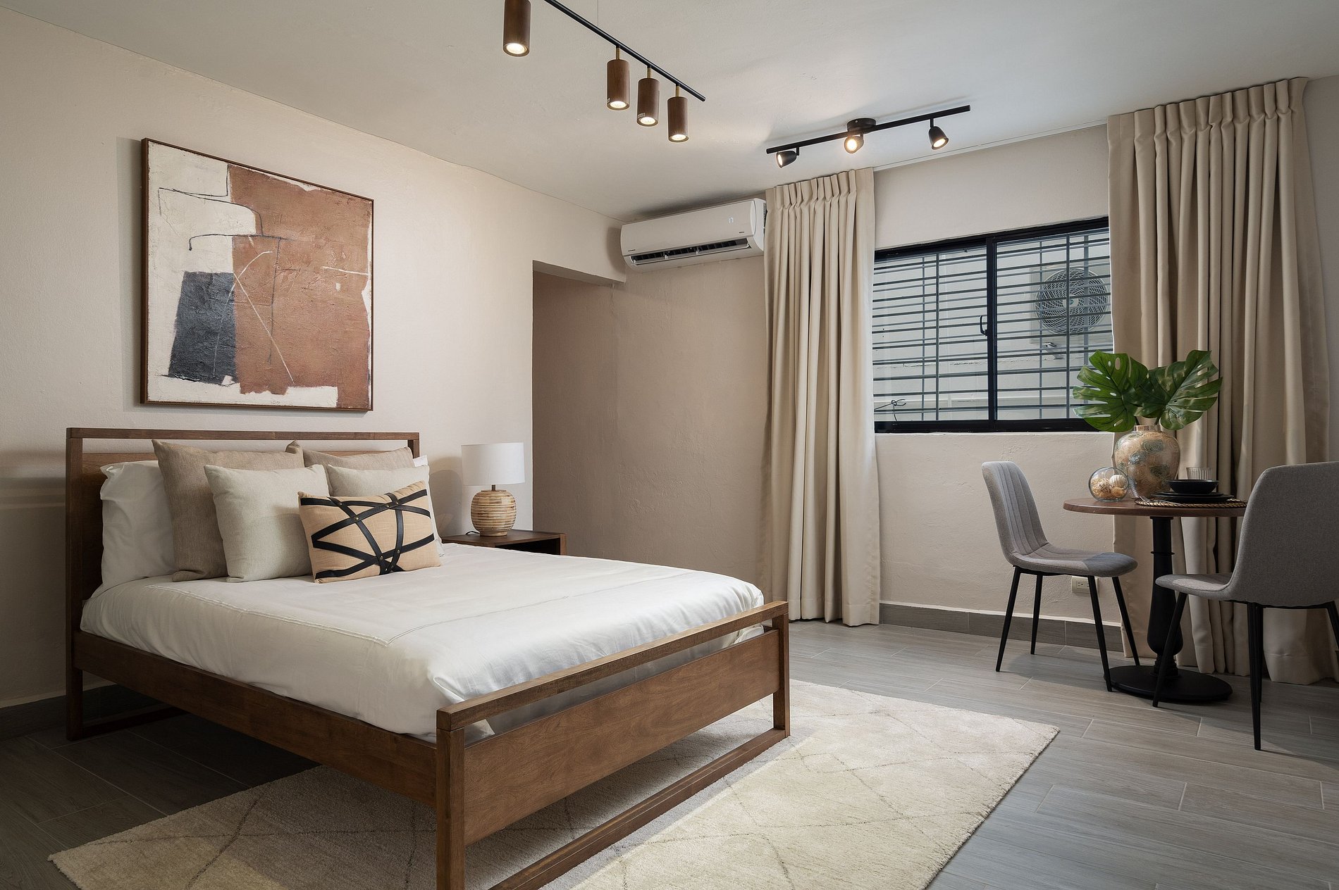This modern studio offers a cozy and tranquil escape in the heart of Gazcue. Equipped with a comfortable double bed, a private kitchen, a spacious closet, and a well-appointed bathroom, it’s designed for both comfort and convenience. The apartment also features a dining table for two, fast Wi-Fi, and a Smart TV, making it perfect for relaxing or working remotely. Whether you're a couple, a solo traveler, or visiting for a procedure at the nearby INCIPLER clinic, this studio provides the ideal home base.