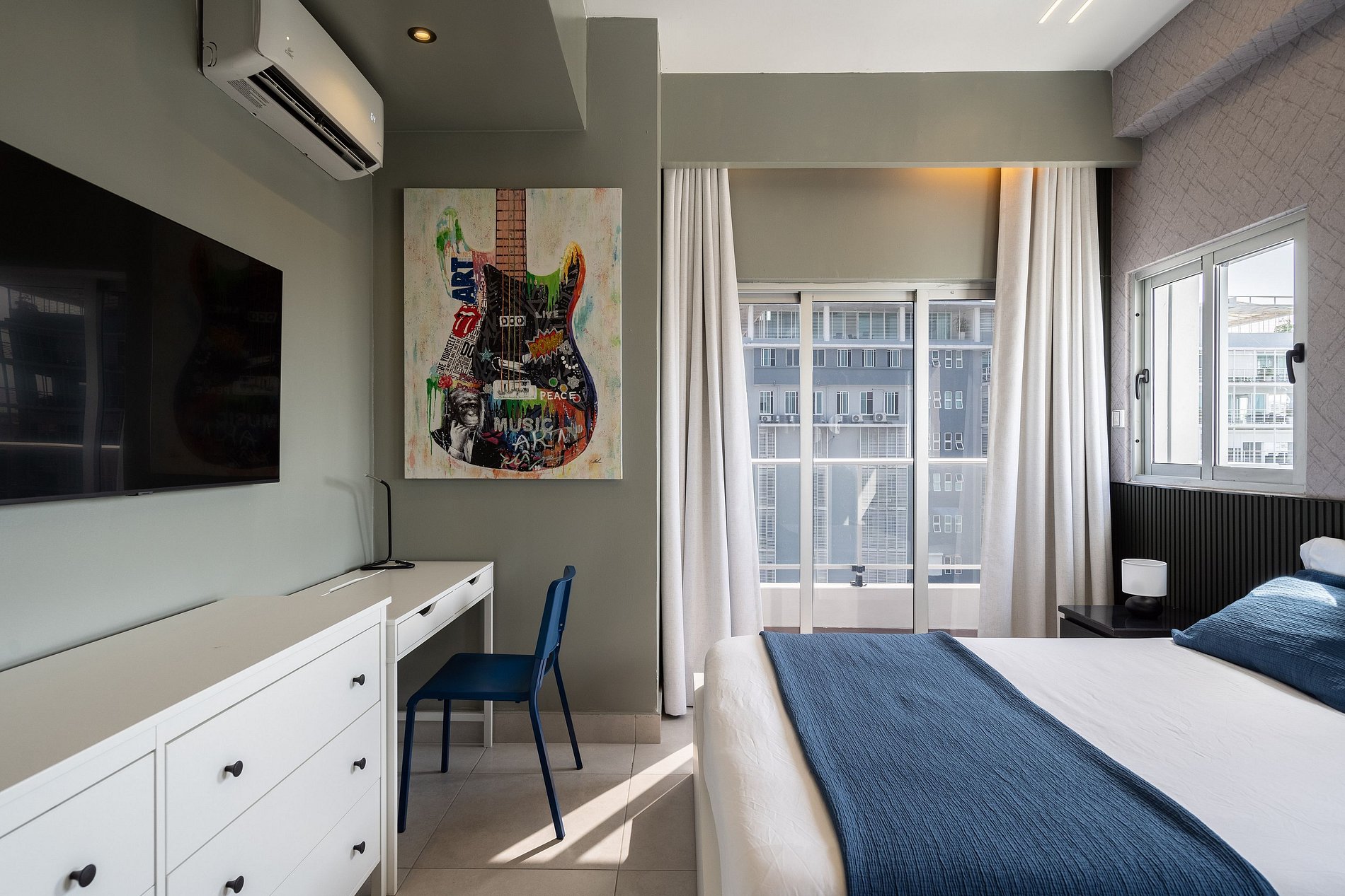 As you step inside, you'll be greeted by a tastefully furnished living room, designed for relaxation and entertainment. Sink into the plush sofa and unwind after a day of exploring the vibrant city or catch up on your favorite shows on the flat-screen TV. The living room also provides ample space for socializing with friends or enjoying a cozy night in.