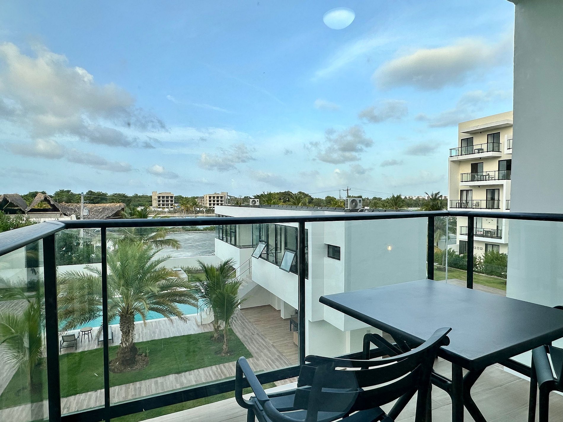 Once you check in, you’ll step into a cozy and thoughtfully designed studio that blends comfort and practicality. The apartment features a queen-size bed, a 50’’ Smart TV with streaming capabilities, air conditioning, and a dedicated desktop workspace , perfect for digital nomads or remote workers. The kitchenette is equipped with an electric 2-burner stovetop, mini fridge, washer and dryer, and basic kitchen essentials for your convenience. Step out onto your private balcony and unwind with a glass of wine while enjoying serene garden and pool views, the perfect setting to relax after a day of work or adventure in Downtown Punta Cana.