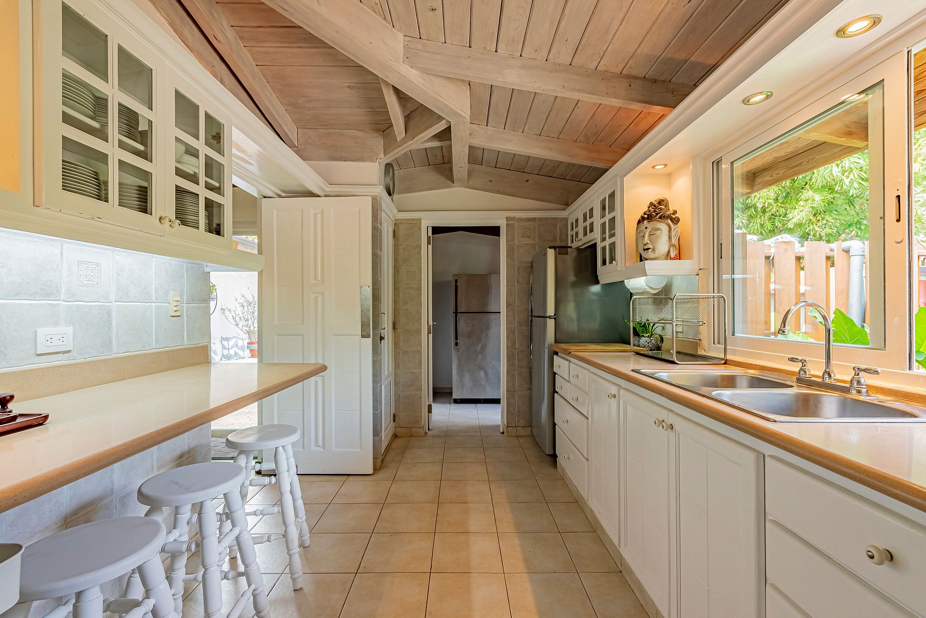 Fully equipped kitchen with modern appliances, perfect for home-cooked meals or private chef services (available upon request).