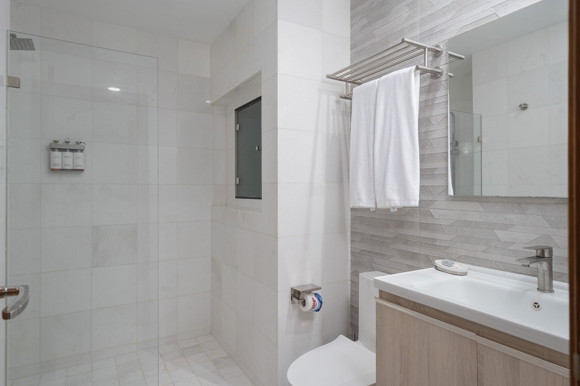 As a guest of this exclusive apartment, you'll have access to a range of premium amenities within the building. Head up to the rooftop to soak up the sunshine and take a dip in the pool or the jacuzzi while enjoying breathtaking views of the city. Stay active in the state-of-the-art gym, or let the little ones burn off energy in the terrace.