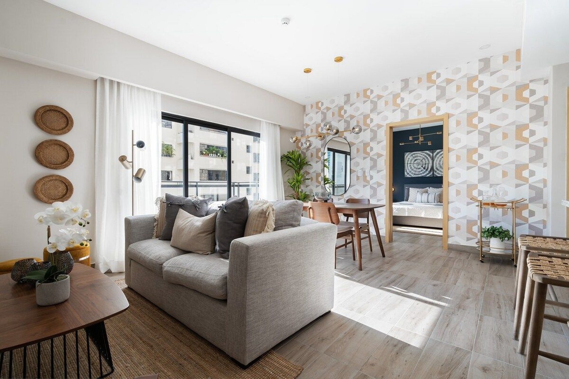 Designed by the famous interior designer Carmen Ariza best known for her commercial and residential projects in santo domingo, this is a contemporary space with mid century vibes, it has perfect natural lightning that gives a peaceful atmosphere , each piece of furniture has been carefully selected to create the most special environment . Enjoy our complete social areas in the roof top with the pool, jacuzzi, steam room or just book your massage with our booking representative.